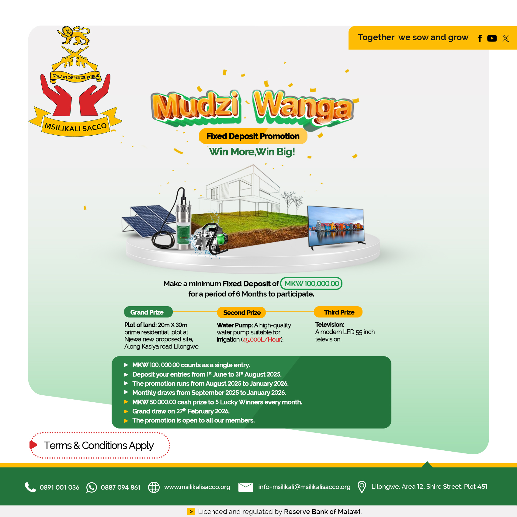 Msilikali Savings and Credit Cooperative (MSACCO) is an affiliate of the Malawi Union of Credit and Cooperatives (MUSCCO). It was registered in March 2017 by the Registrar of Cooperatives in the Ministry of Trade and Industry.